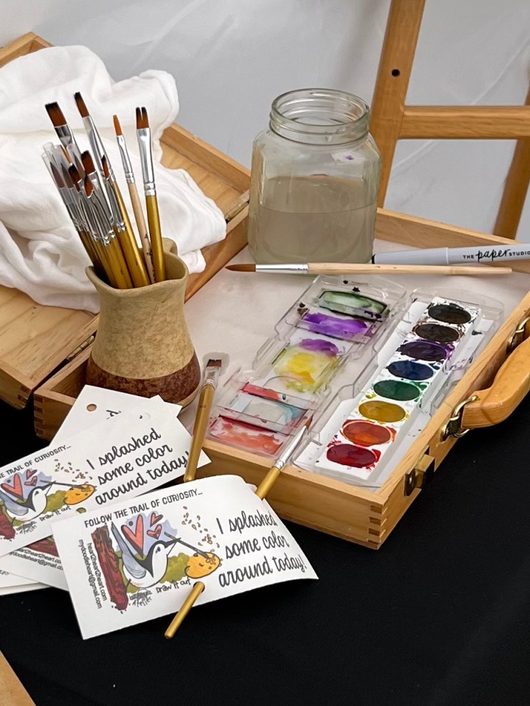 Therefore, I like to provide small bits of opportunity for visitors to any of my art pop-ups to pick up a brush, fill it with water and paint, and make some art. The response is very much the same: