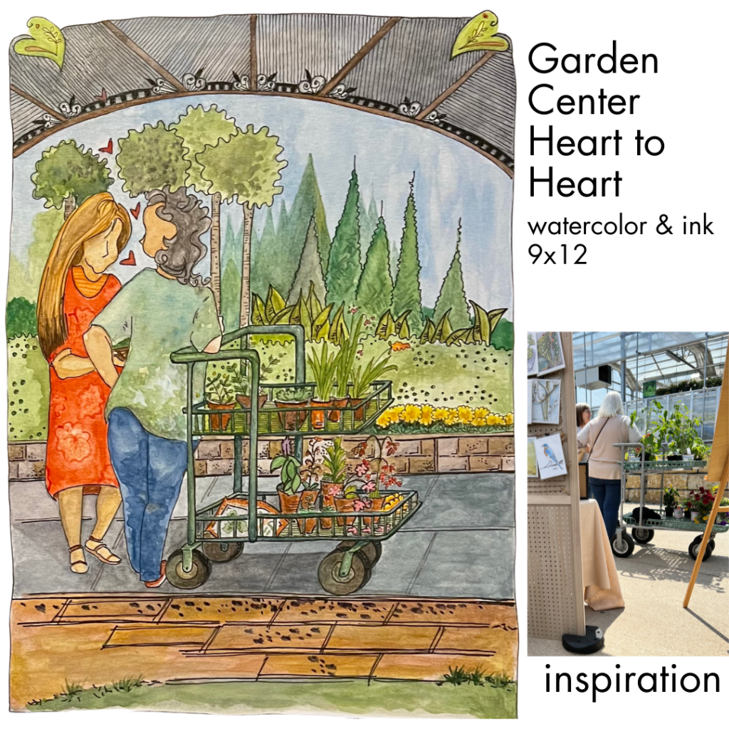 This painting, Garden Center Heart to Heart, started brewing just about a year ago when I snapped a photo at the 2023 Art in the Garden event.